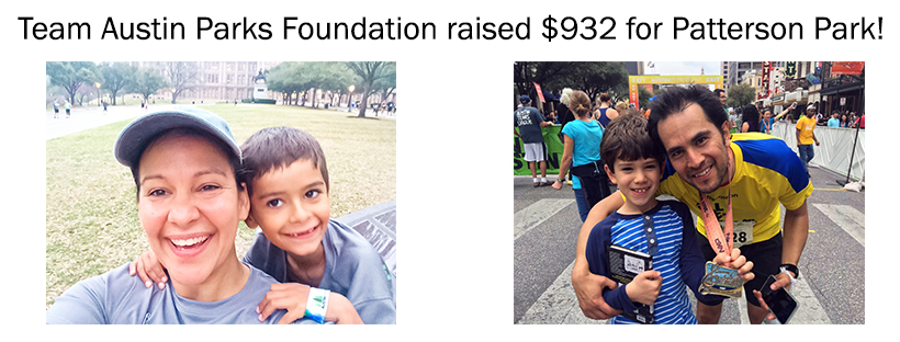 Three neighbors participating in Team Austin Parks Foundation raised $932 for Patterson Park at the 2017 Austin Marathon races on Sunday, Feb. 19. Javier Jara ran the full marathon, and Jennifer Potter-Miller and Maplewood 1st grader Nicolas Miller-Potter ran the 5K race. APF generously agreed to allocate all funds raised directly to Patterson's account. It … Continue reading Neighbors Raise $932 for Park During Austin Marathon Races