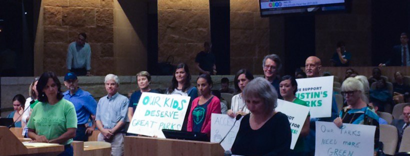 By Jennifer Potter-Miller On Thursday, August 31, I joined the Austin Parks Foundation and other park adopters to advocate for parks funding at a public hearing at City Hall on the City of Austin's 2018 budget. I hope that the new budget makes progress on addressing the huge shortfalls in funding for park maintenance and … Continue reading Advocating for Playground Safety Funds in the City of Austin’s 2018 Budget