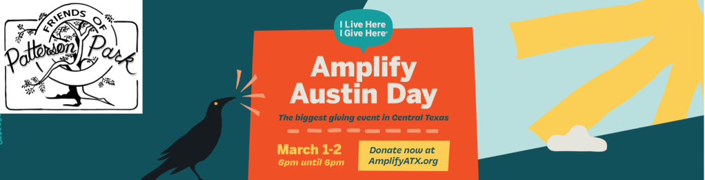 A huge THANKS to our Amplify sponsors Nature’s Treasures, Franklin Barbecue, Jade Construction, Mueller Foundation, Oddwood Ales, Moontower Cider, and Cherrywood Neighborhood Association! We are also grateful for the support of Austin Parks Foundation, our fiscal sponsor, which will match donations up to $3500 dollar for dollar and make your gift stretch even further!