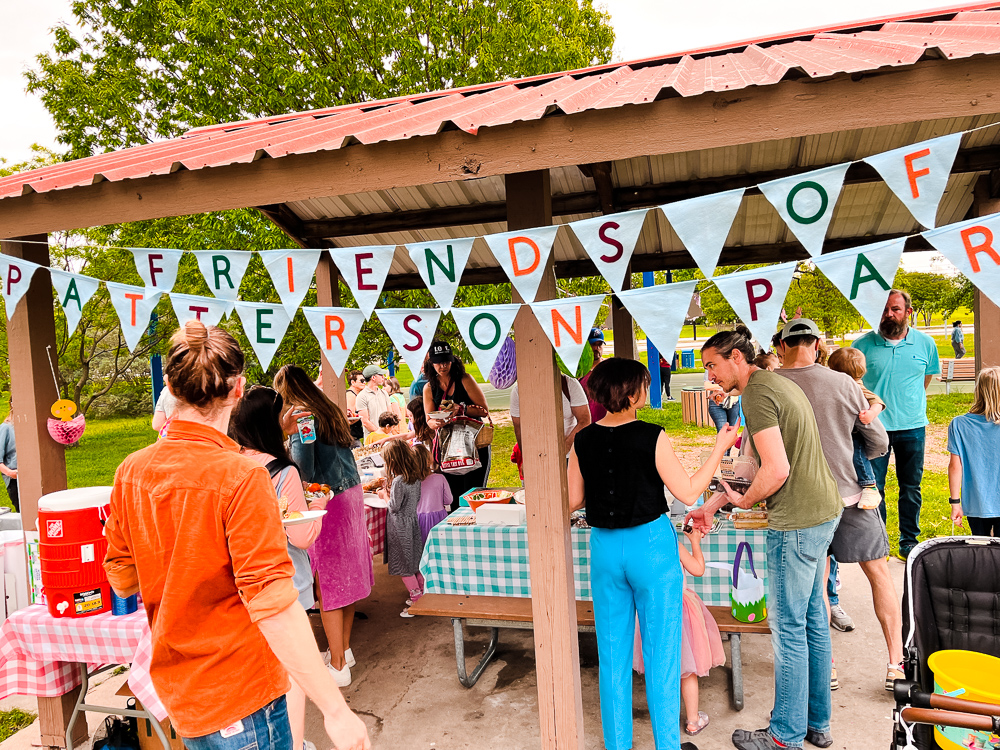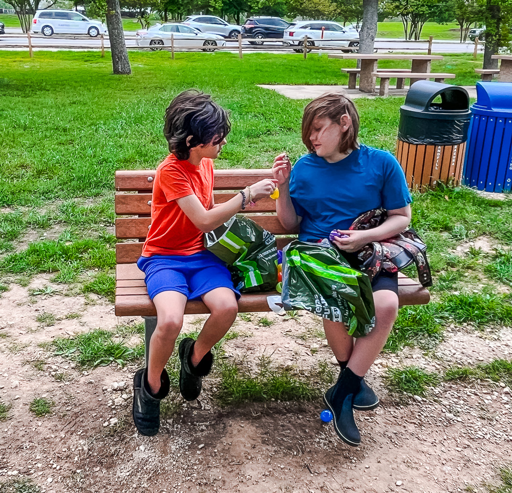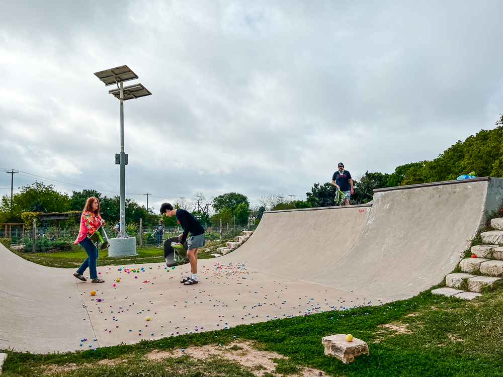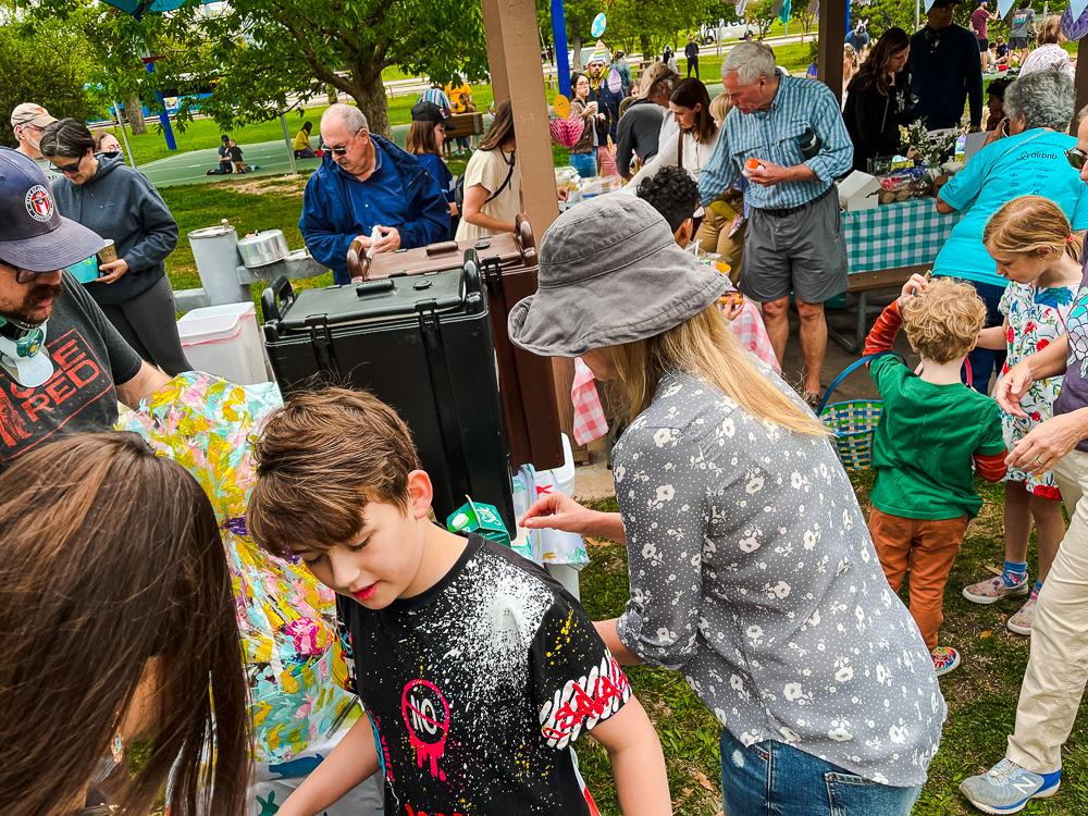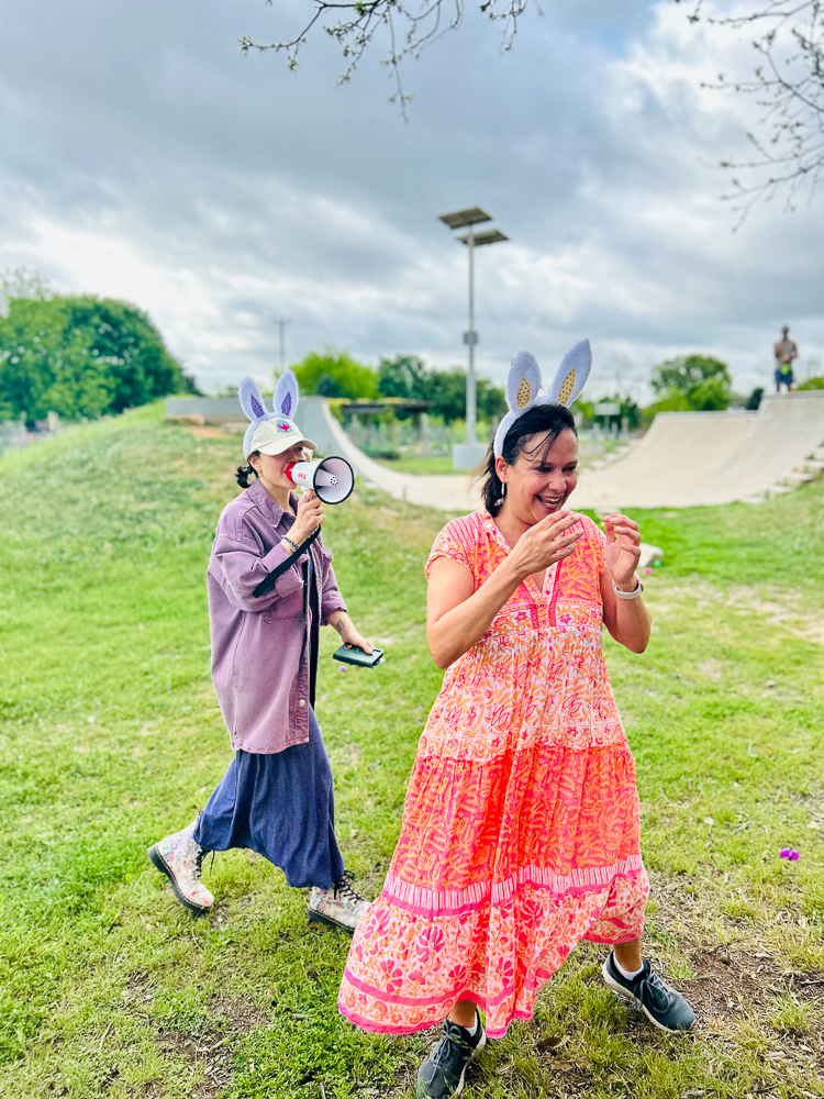 What an amazing weekend at Patterson Park! Our 8th Annual Egg Hunt was unforgettable! We are so grateful to our community partners, Nature’s Treasures Texas and Genesis Creative Collective, for the treasure-filled eggs and enormous amount of help, Pat and Barry Massey for masterminding the egg stuffing, Cara Choate for baking many dozens of goodies, Ruta Maya Organic Coffee for donating 10 gallons of coffee, the sweet Easter Bunny, all the volunteers who stuffed and hid eggs, and everyone who brought food for the potluck and joy to our neighborhood park!