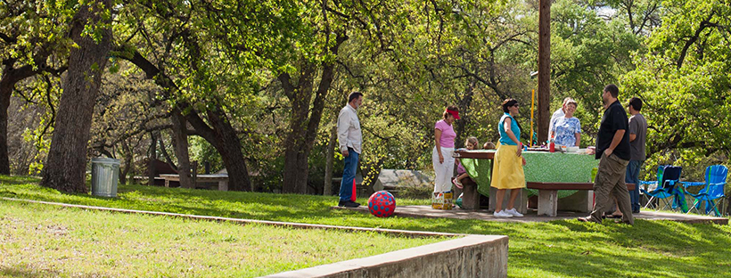 In addition to the picnic tables at the Patterson pavilion, there are cement picnic tables scattered throughout the park that are used for meals, get-togethers, and meetings. These are first come first-serve, and usually filled on the weekends.
